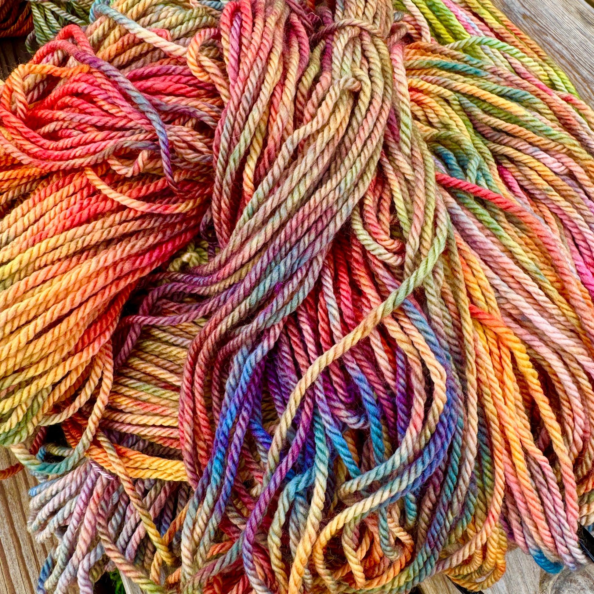 A lovely soft aran with a lovely twist, the knitted fabric has a classic aran look, it’s great for cabling. A 4.5mm needle will compensate for the superwash stretch and this made a lovely drapey fabric, this would also work on a 4mm, especially for rib.