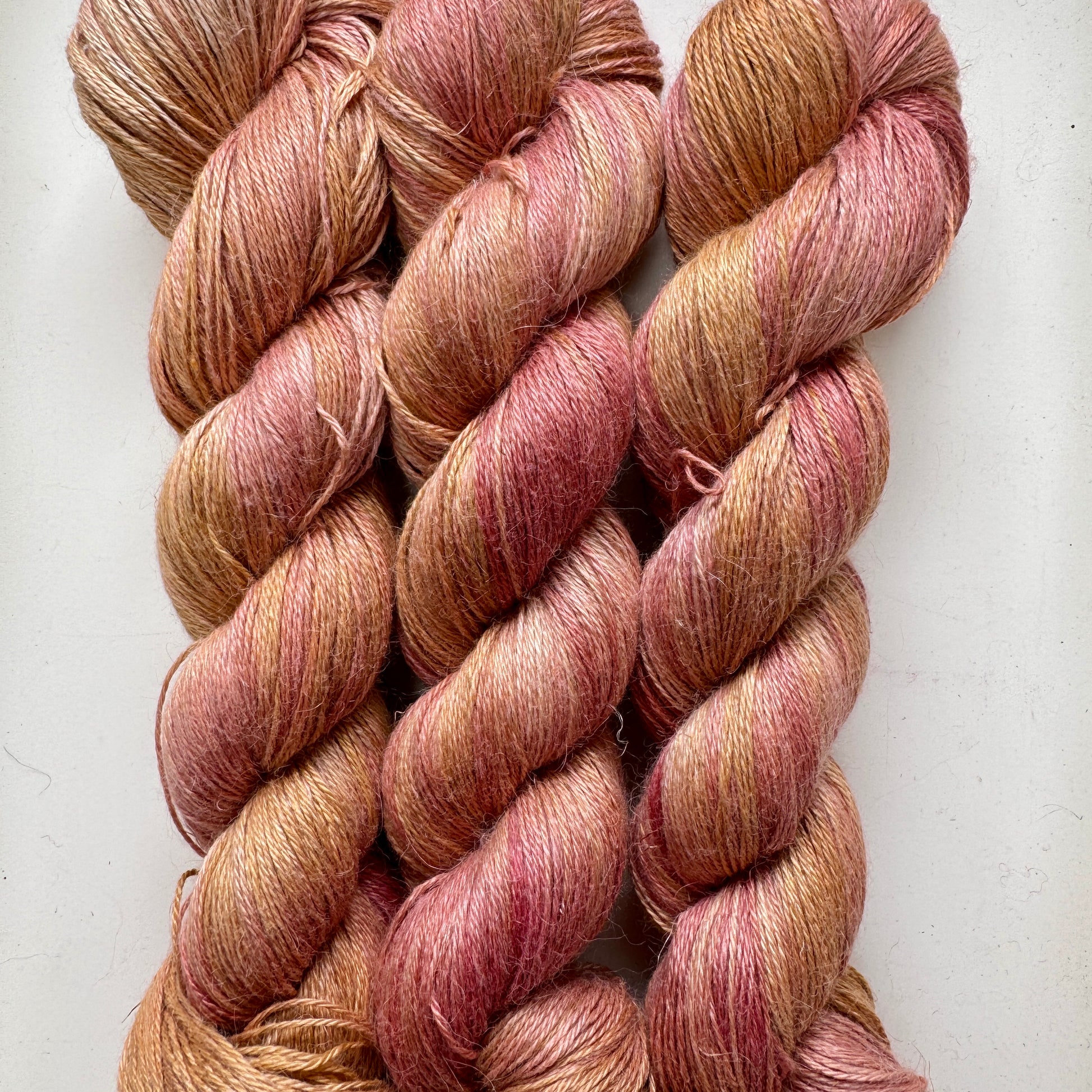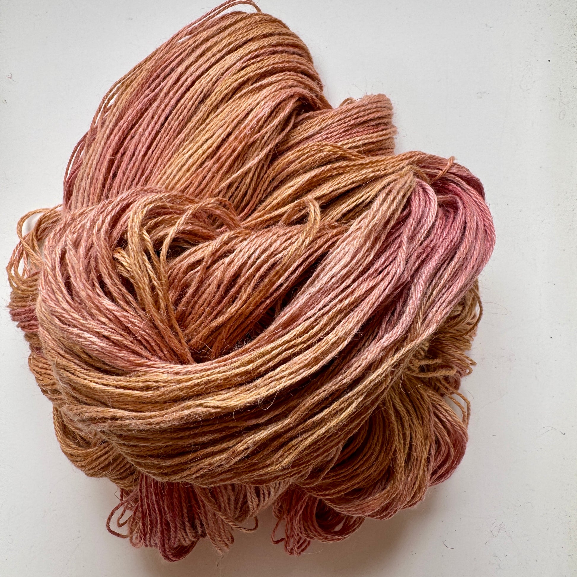 Something a little different, this linen blend is a wonderful summery yarn. The linen adds a caramel quality to the colour of the yarn, and the addition of the silk keeps it light and gives it a delicate shine. The alpaca gives it a nice drape and softness. This would make a great yarn for summer sweaters and cardigans, and for light shawls. It would also work really nicely for weaving.