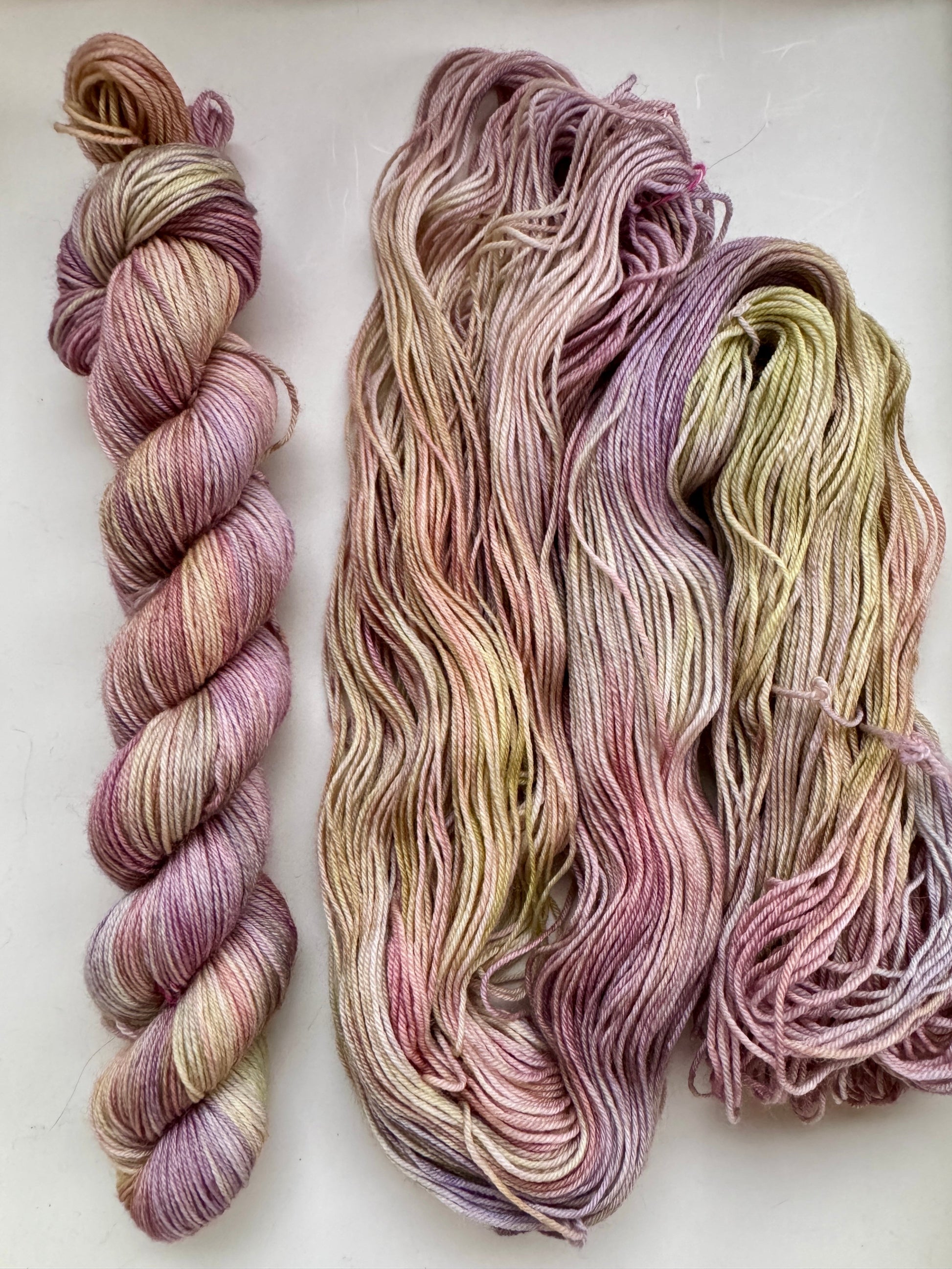 Bluefaced Leicester is a really robust fibre. This yarn has a toothy texture and makes great socks. For a super tight gauge knit on 2.25mm needles, and for a slightly lighter fabric use 2.5mm.