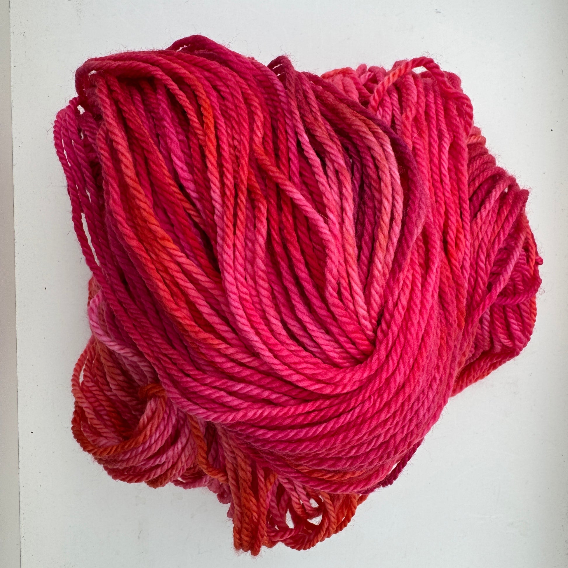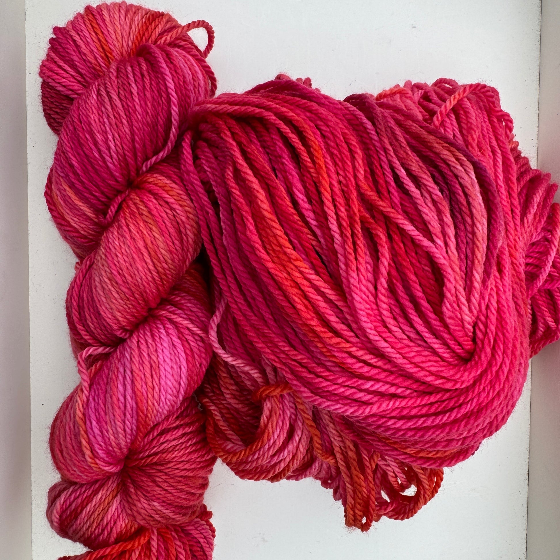 A super soft aran with a lovely twist, the knitted fabric has a classic aran look, it’s great for cabling. When a 4.5mm needle was used to compensate for the superwash stretch it knitted in to a lovely drapey fabric, this would also work on a 4mm, especially for rib.
