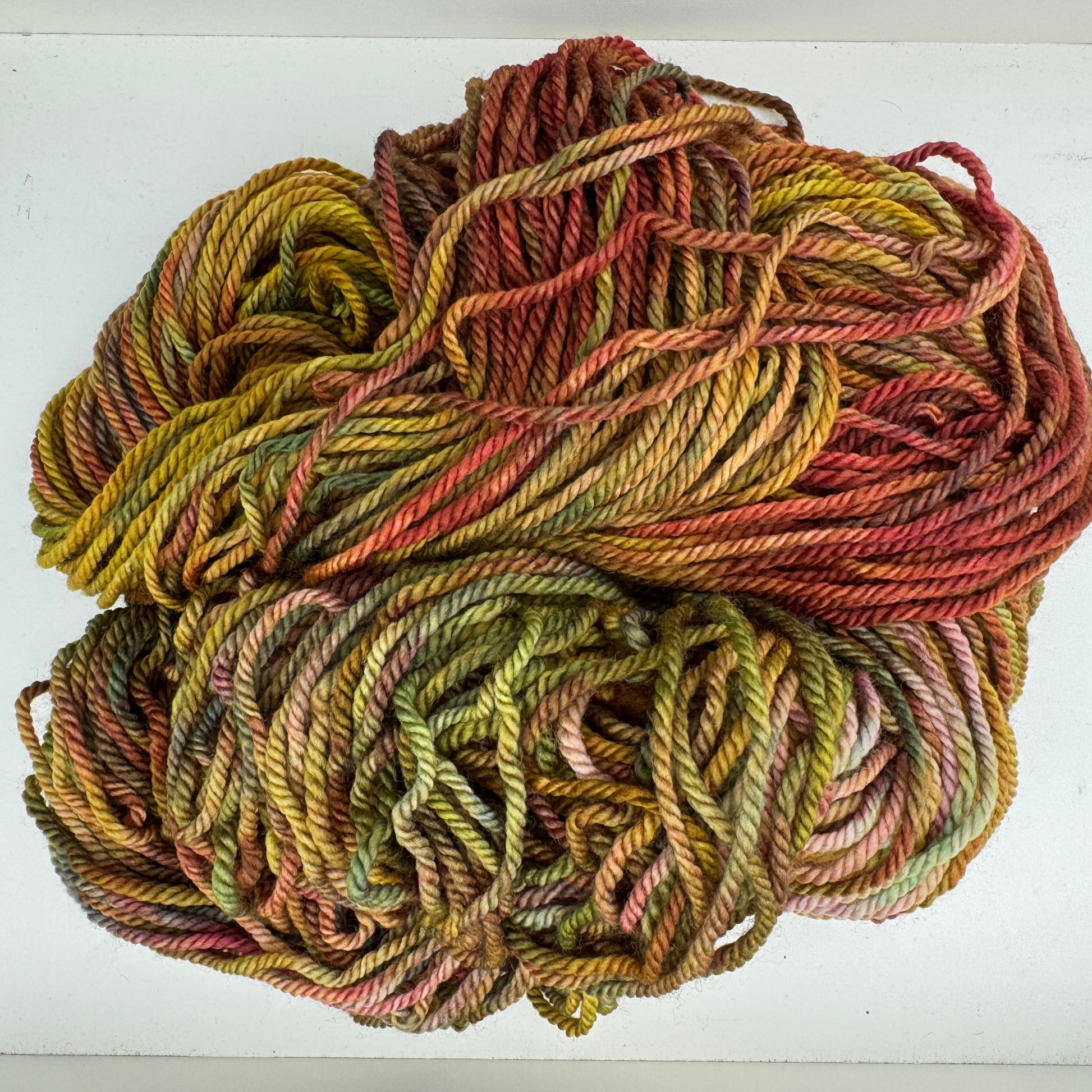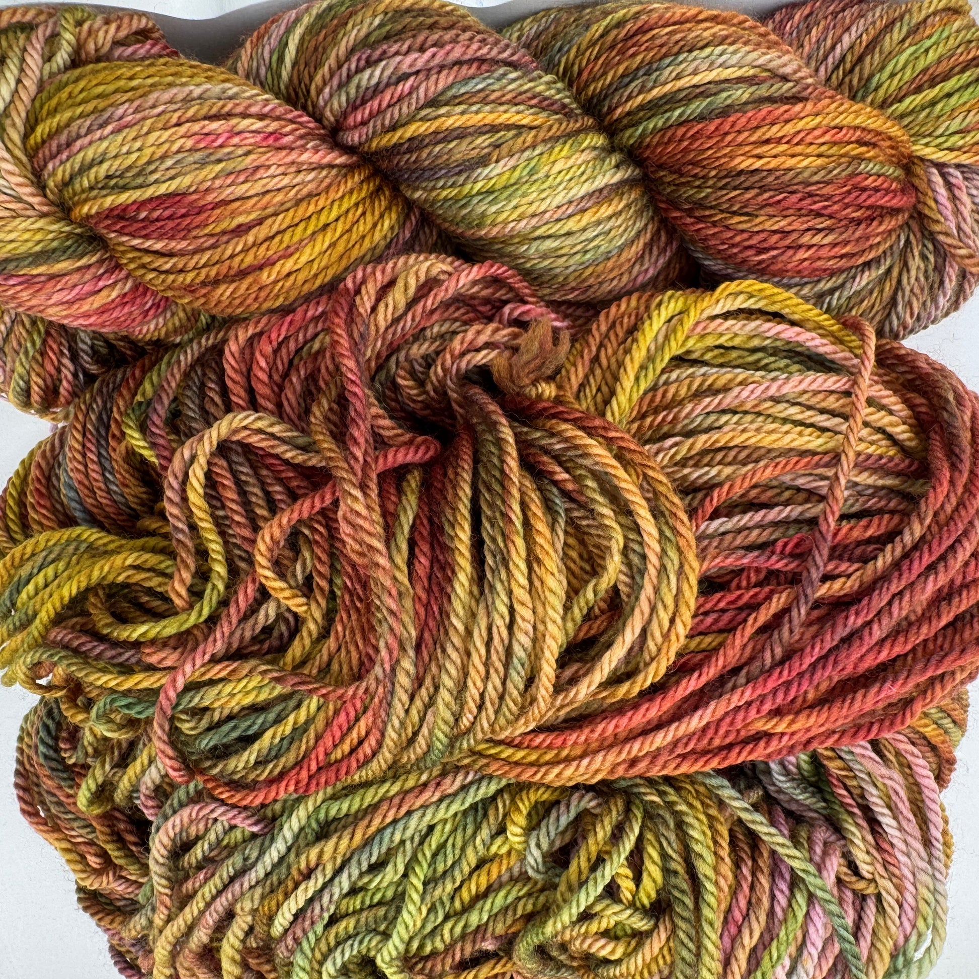 A super soft aran with a lovely twist, the knitted fabric has a classic aran look, it’s great for cabling. When a 4.5mm needle was used to compensate for the superwash stretch it knitted in to a lovely drapey fabric, this would also work on a 4mm, especially for rib.
