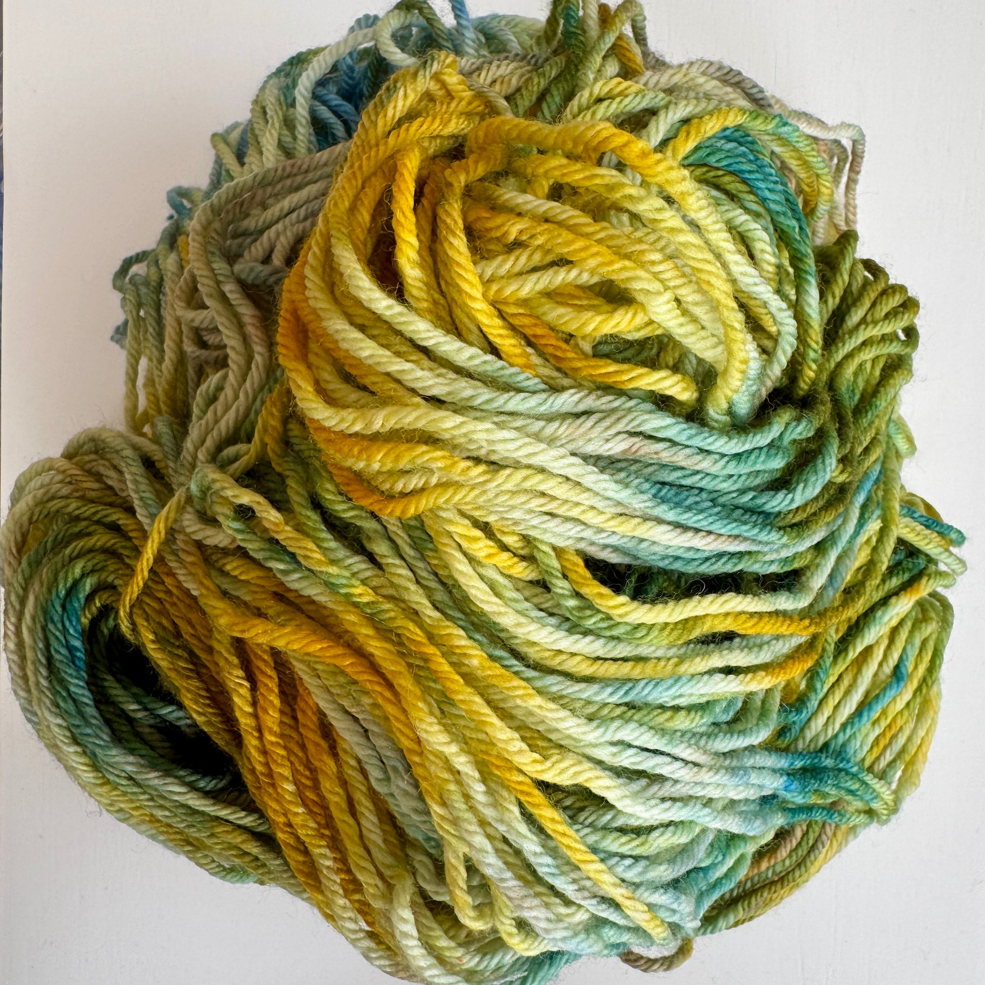This is a lovely yarn; it is a soft, but robust yarn with a great stitch definition. The knitted fabric is pill resistant and great for children’s clothing. We used 5mm needle for this and it has a nice drape, but you could go down to a 4mm for a tighter gauge.