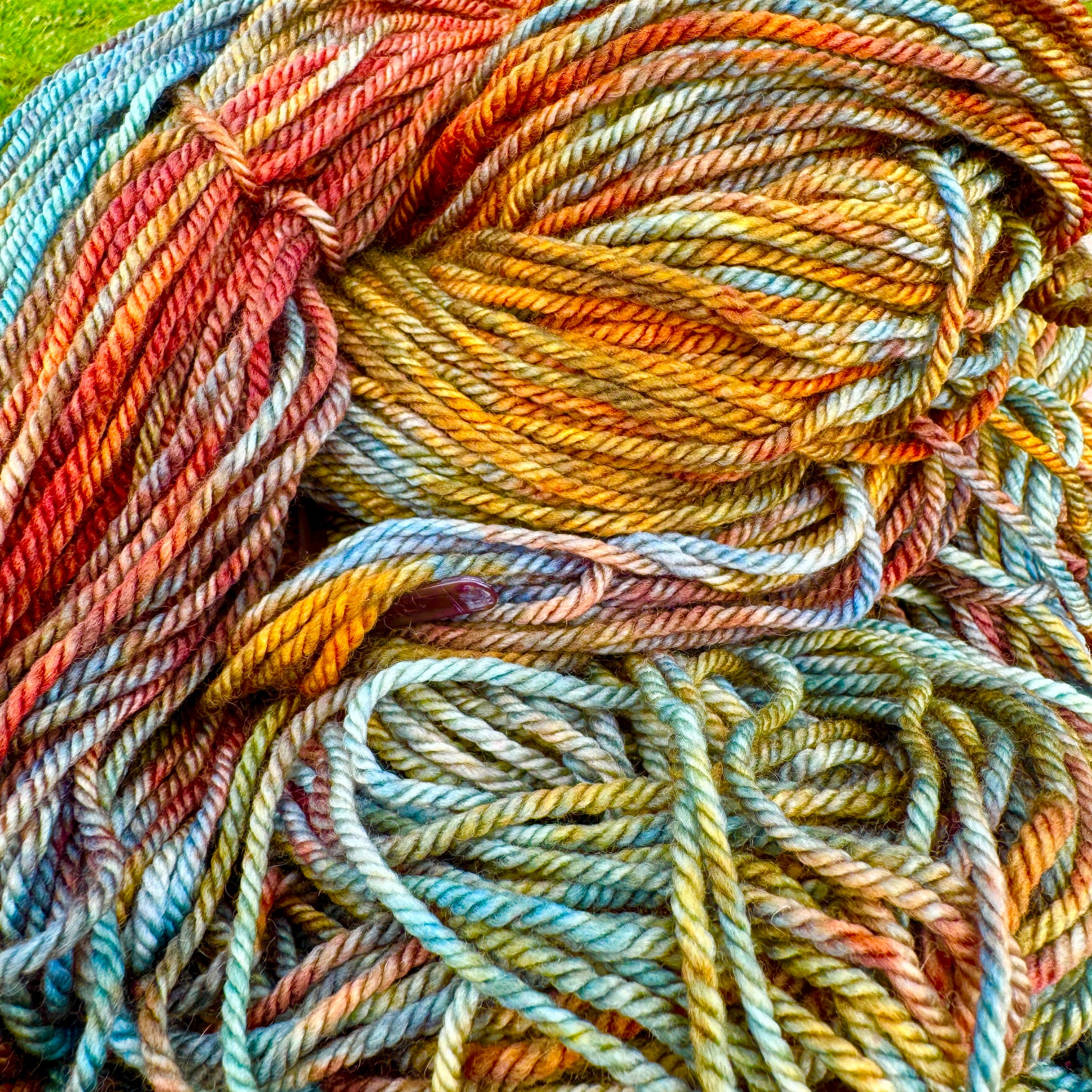 A super soft aran with a lovely twist, the knitted fabric has a classic aran look, it’s great for cabling. When a 4.5mm needle was used to compensate for the superwash stretch it knitted in to a lovely drapey fabric, this would also work on a 4mm, especially for rib.