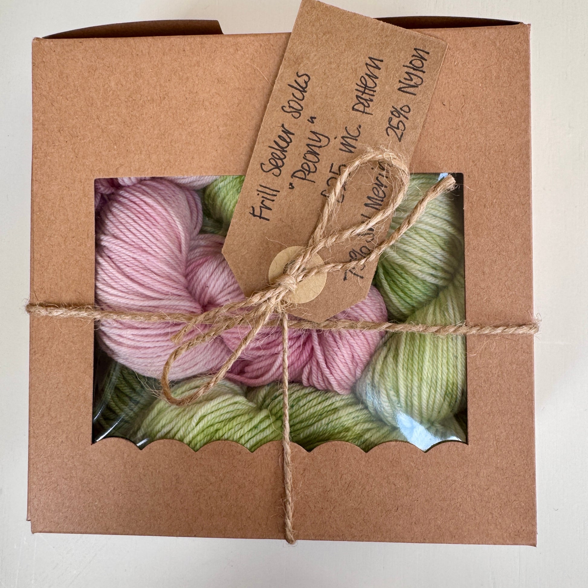 Kit includes 90-100g of sock wool (75% superwash merino wool 25% nylon) and printed knitting pattern. Available in various colour combinations.