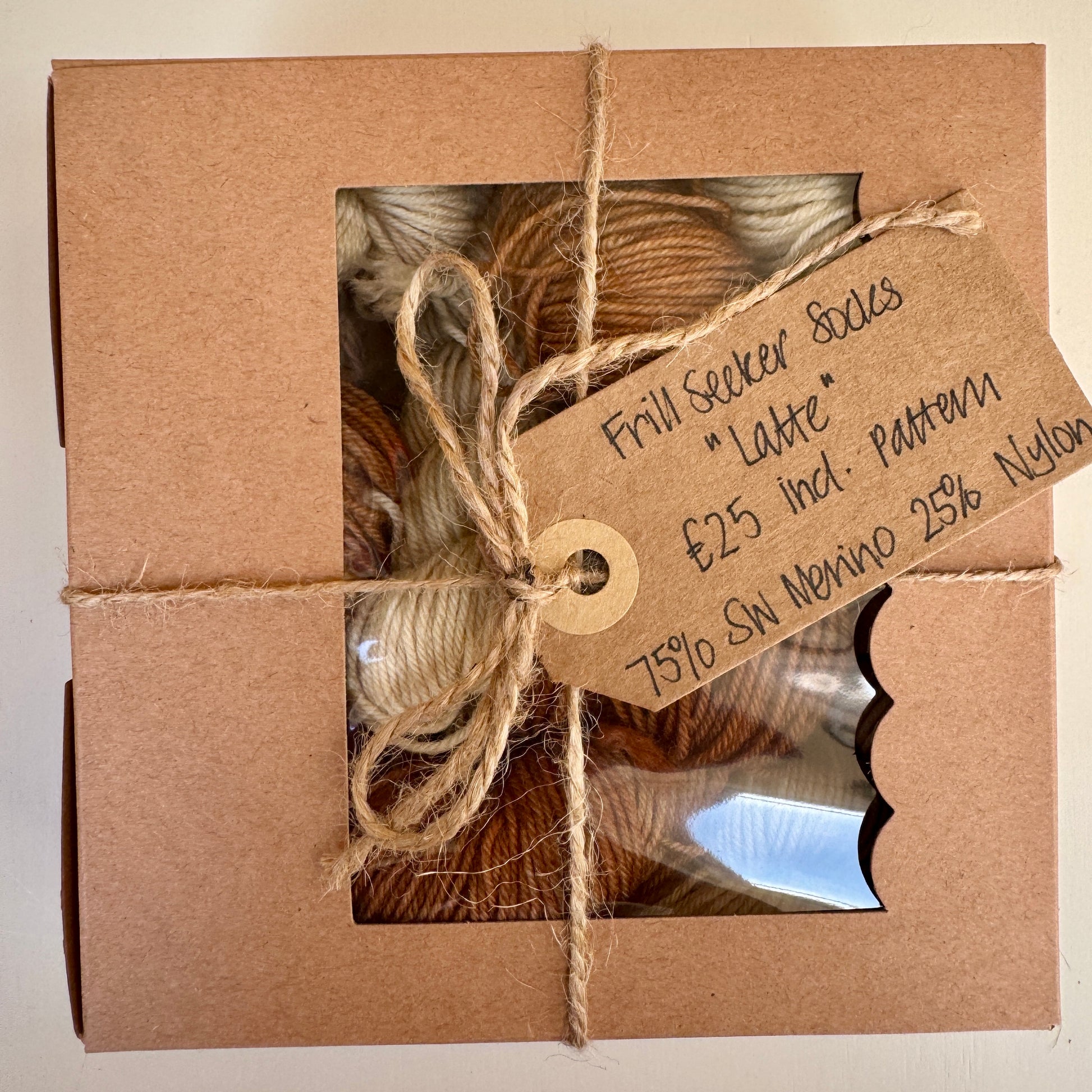 Kit includes 90-100g of sock wool (75% superwash merino wool 25% nylon) and printed knitting pattern. Available in various colour combinations.