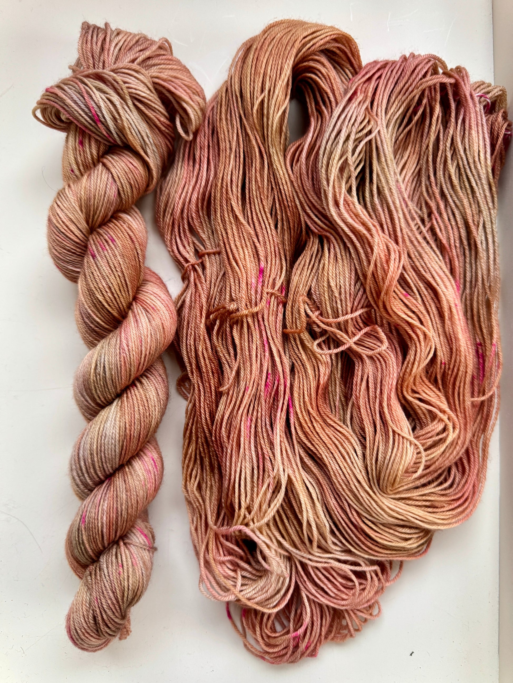 Bluefaced Leicester is a really robust fibre. This yarn has a toothy texture and makes great socks. For a super tight gauge knit on 2.25mm needles, and for a slightly lighter fabric use 2.5mm.