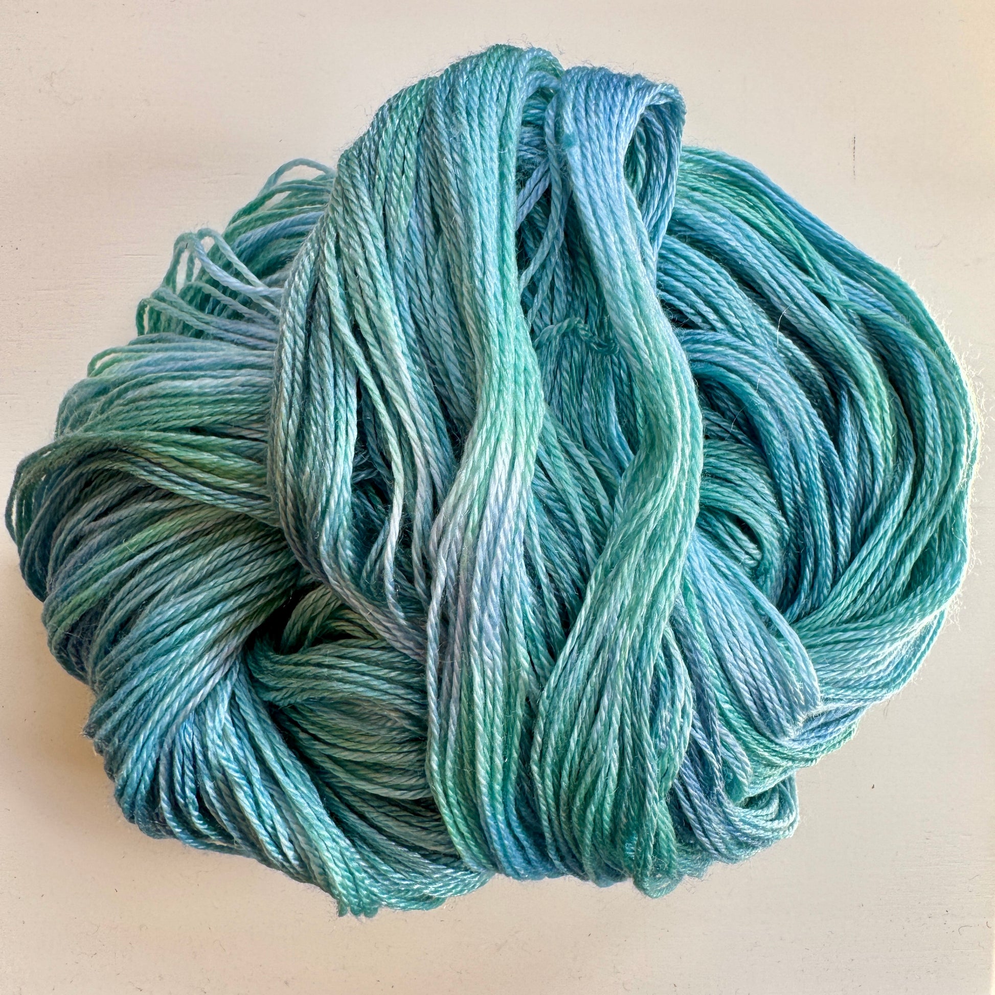 Tencel is a cellulose (plant) fibre made from wood pulp. It gives a lovely shine, almost sparkly.