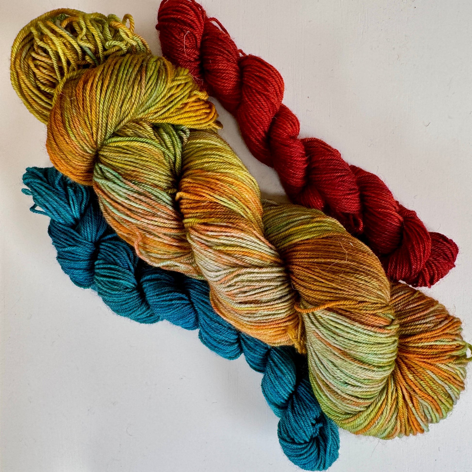 The set contains 100g skein and two 20g skeins of contrast colours. Ginger beer not included!