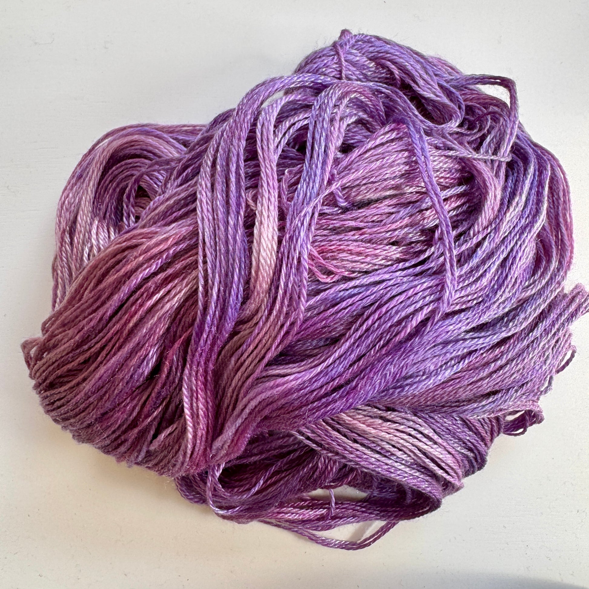 A fine yarn, plump and squishy with a lovely reflective sheen, very soft handle.